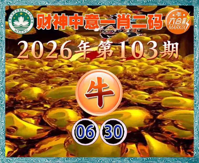 103期:『财神中意』 一肖二码】【06.30】开:牛06