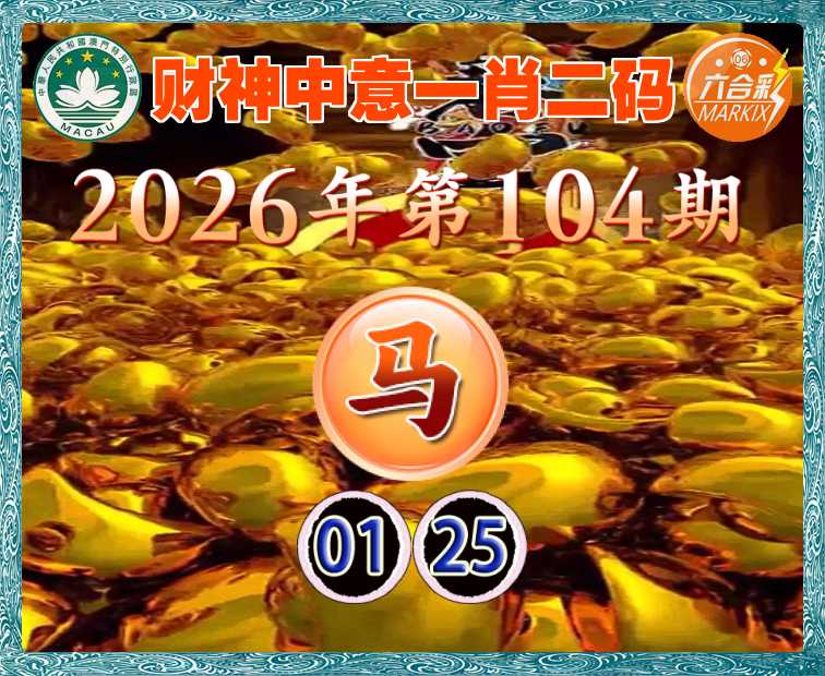 104期:『财神中意』 一肖二码】【01.25】开:马01